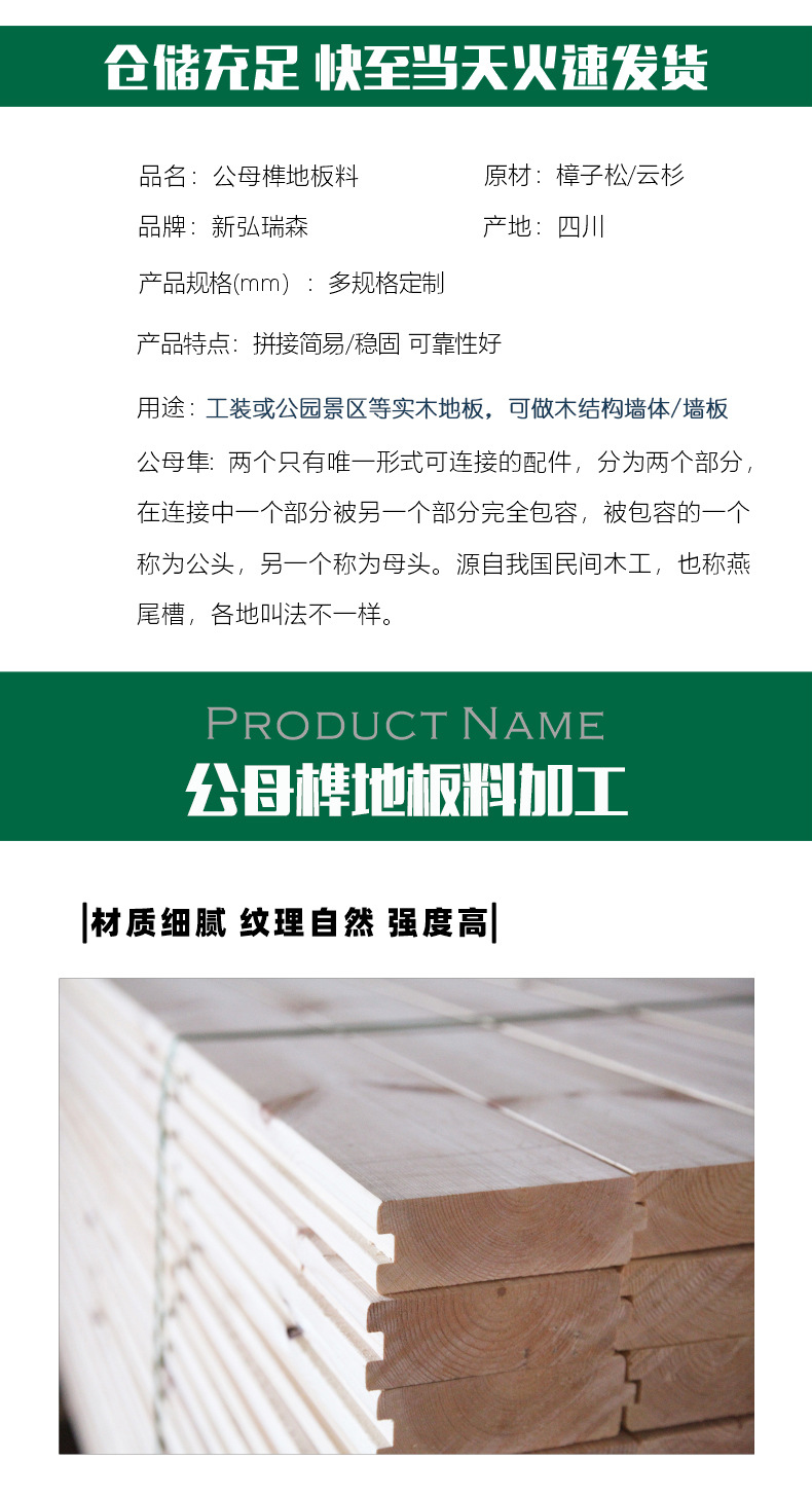 藏式地板松木材质小阁楼门面装修地板易安装天然材质环保公母榫槽